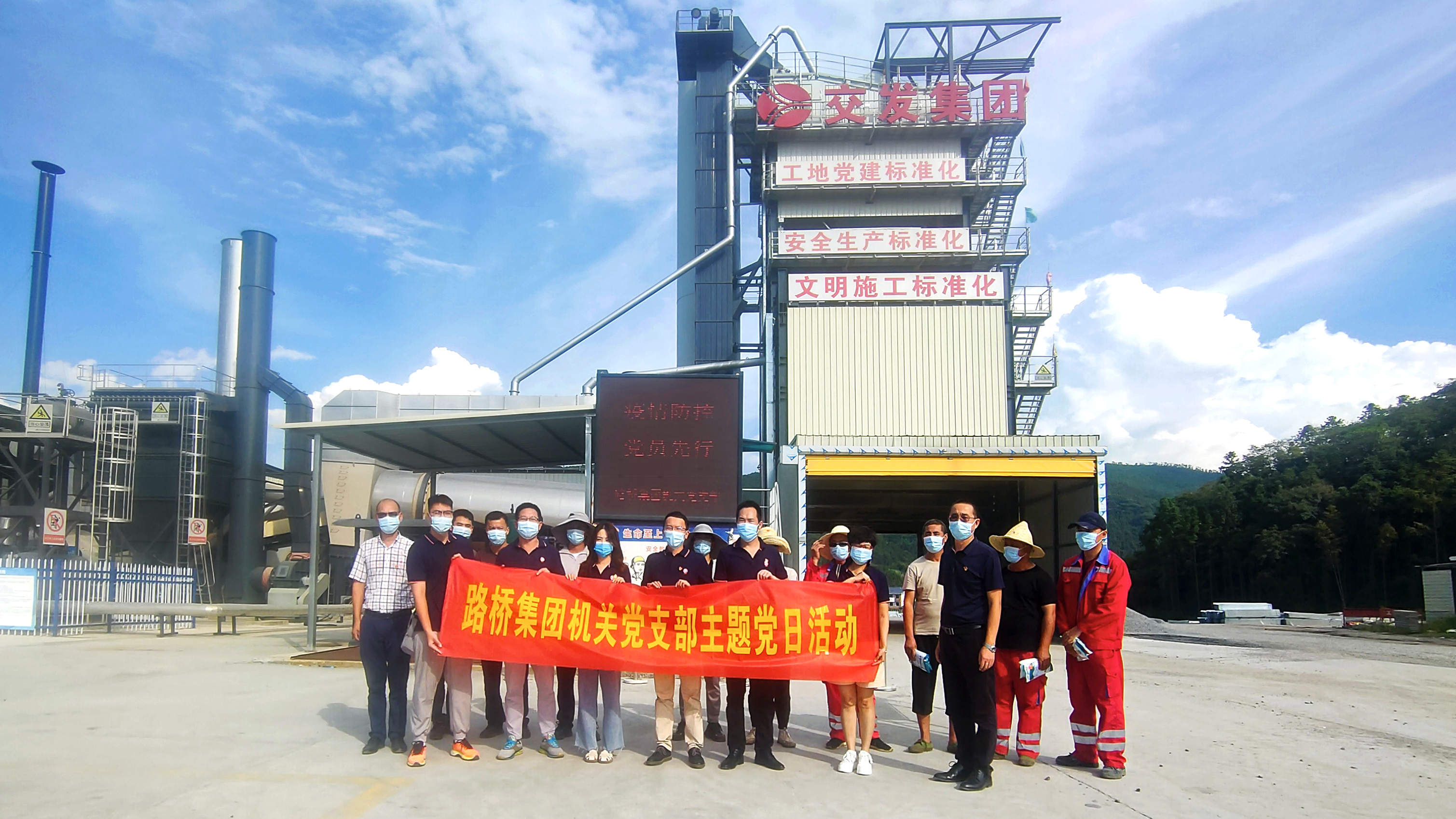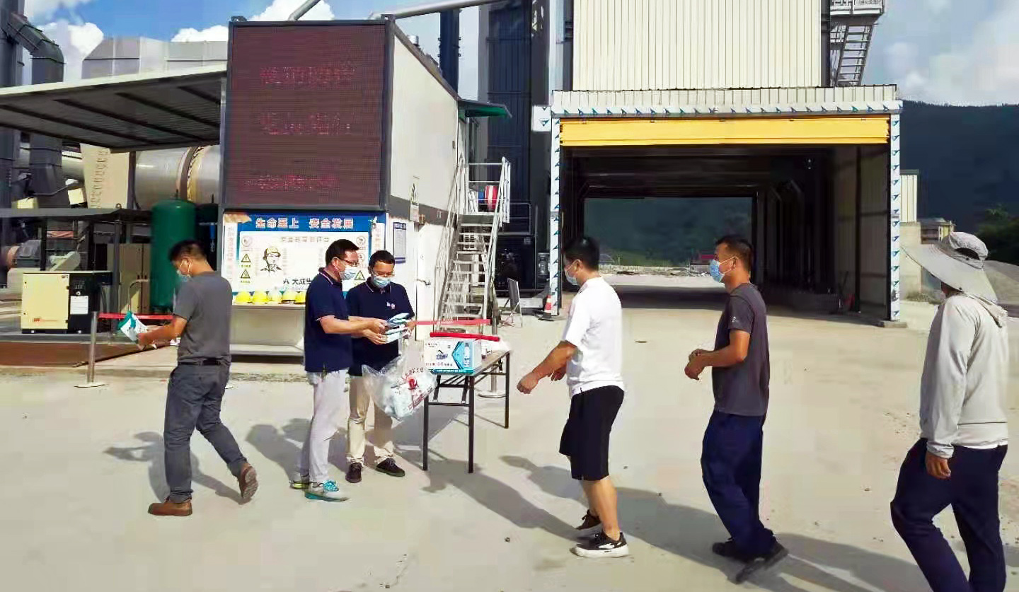 疫情就是命令,防控就是責任。為強化疫情防控組織領導,落實市交通檢疫組《關于加強當前新冠肺炎疫情防控工作的通知》文件精神,充分發揮基層黨員的戰斗堡壘和先鋒模范作用,8月18日,市路橋集團機關黨支部深入瀝青拌合站項目開展“疫情防控 黨員先行”主題黨日活動,為項目一線工人發放口罩、消毒液、酒精等防疫物資,現場宣講防疫知識、政策,指導日常防疫、應急隔離等工作,活動現場防疫氛圍濃厚。