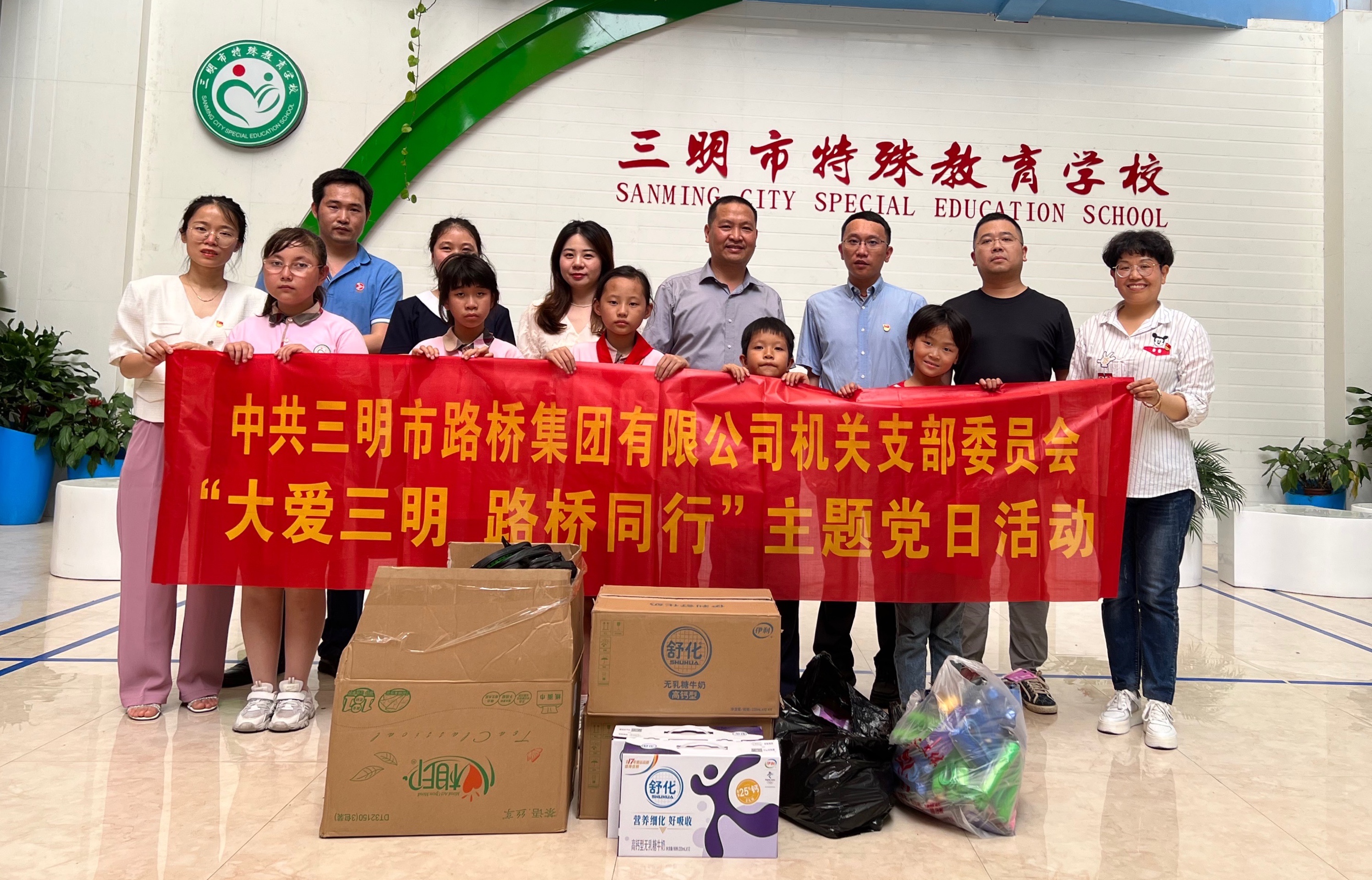 機關黨支部走進三明市特殊學校開展“大愛三明 路橋同行”主題黨日活動,在活動現場,黨員們參觀了學校校園環境、食堂、教室、宿舍,看望了生活在學校的孩子們,向他們捐贈了生活、體育用品等愛心物資,當看到孩子們親手制作的精致手工作品、繪畫作品時,大家被孩子們不懼困難、向陽生長的堅強毅力以及學校全體教育工作者付出的大愛深深地感動著。