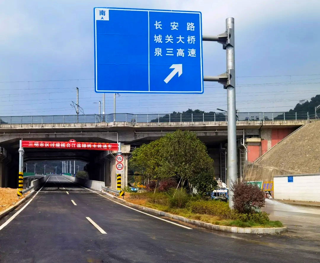 10月30日,國道G205線市區過境線至三明站連接線建成通車。該項目總投資2.6億元,線路全長2.56公里,起于臺江大橋西側橋頭,下穿南三龍快速鐵路,上跨長安路、鷹廈鐵路,終點與國道205線市區過境線相接,按城市主干道兼二級公路等級標準設計,雙向四車道,設計時速60公里/小時。