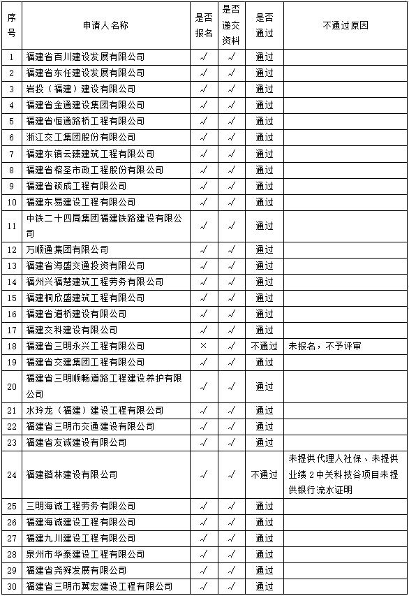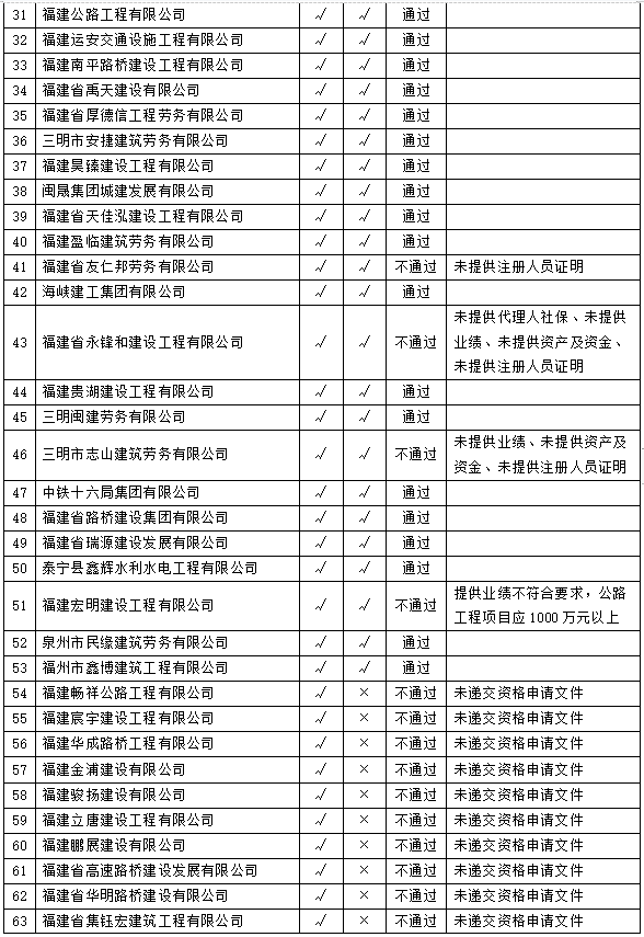 我司已對公路工程勞務隊伍信息庫進行了評審,現將評審結果進行公示,公示時間為2022年6月28日至6月30日。申請人若對資格評審結果有異議的,請在公示期內以書面的形式向三明市路橋集團有限公司紀檢監察部進行反饋。