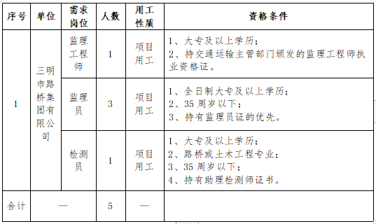(一)公告。招聘崗位、人數(shù)、任職資格等信息在 “三明市路橋集團(tuán)”官網(wǎng)(www.weifangyoubang.com)“一覽英才網(wǎng)”官網(wǎng)向社會統(tǒng)一公告。