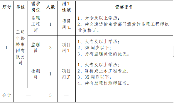 (一)公告。招聘崗位、人數(shù)、任職資格等信息在 “三明市路橋集團(tuán)”官網(wǎng)(www.weifangyoubang.com)“一覽英才網(wǎng)”官網(wǎng)向社會統(tǒng)一公告。
