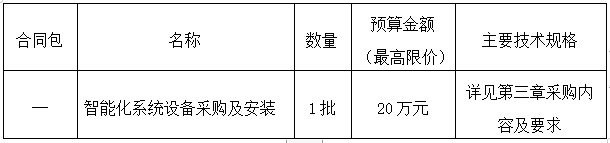 三明交發集團高速公路養護基地智能化設備采購及安裝工程已由有關部門批準采購,采購人為三明市路橋集團物資貿易有限公司。項目已具備采購條件,現對該項目進行公開競爭性談判。