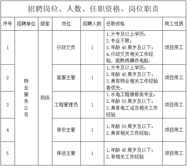 因工作需要,按照公開、公平、公正、競爭擇優的原則,面向社會公開招聘項目用工5名,現將崗位招聘信息發布如下: