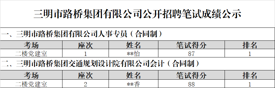 市路橋集團公開招聘筆試環節已于2023年11月3日完成,現將筆試成績予以公示: