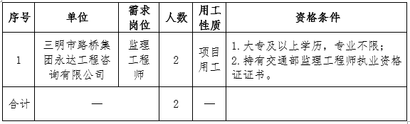(一)公告。招聘崗位、人數、任職資格等信息在 “三明市路橋集團”官網(www.weifangyoubang.com)向社會統一公告。