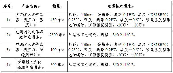 (一)采購內容:大田廣平至安溪官橋高速公路三明段懸澆橋梁施工監(jiān)控量測埋入式傳感器及所需用線一批。