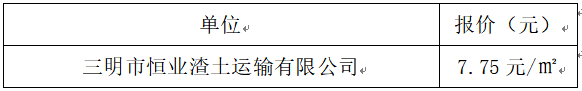 三明市交發物業服務有限公司交發首郡裝修垃圾清運項目(第二次)詢價,于2025年4月30日在交發大廈13樓1310室開標,現將最終中標結果公示如下: